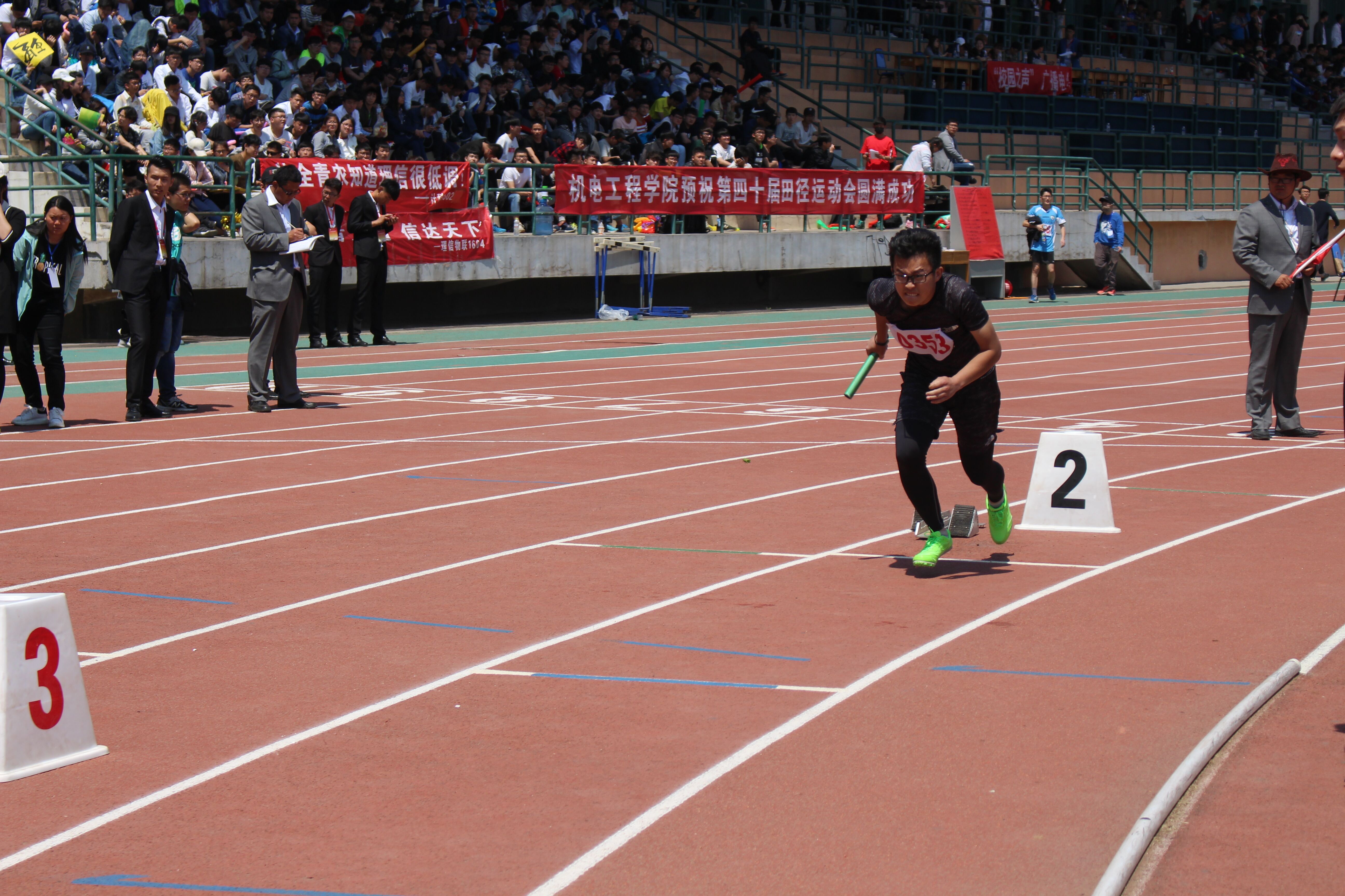 4月27日,青岛农业大学第四十届田径运动会男子4×100米接力赛正进行激烈角逐,人文学院运动健儿积极参赛,团结一致,奋力拼搏。