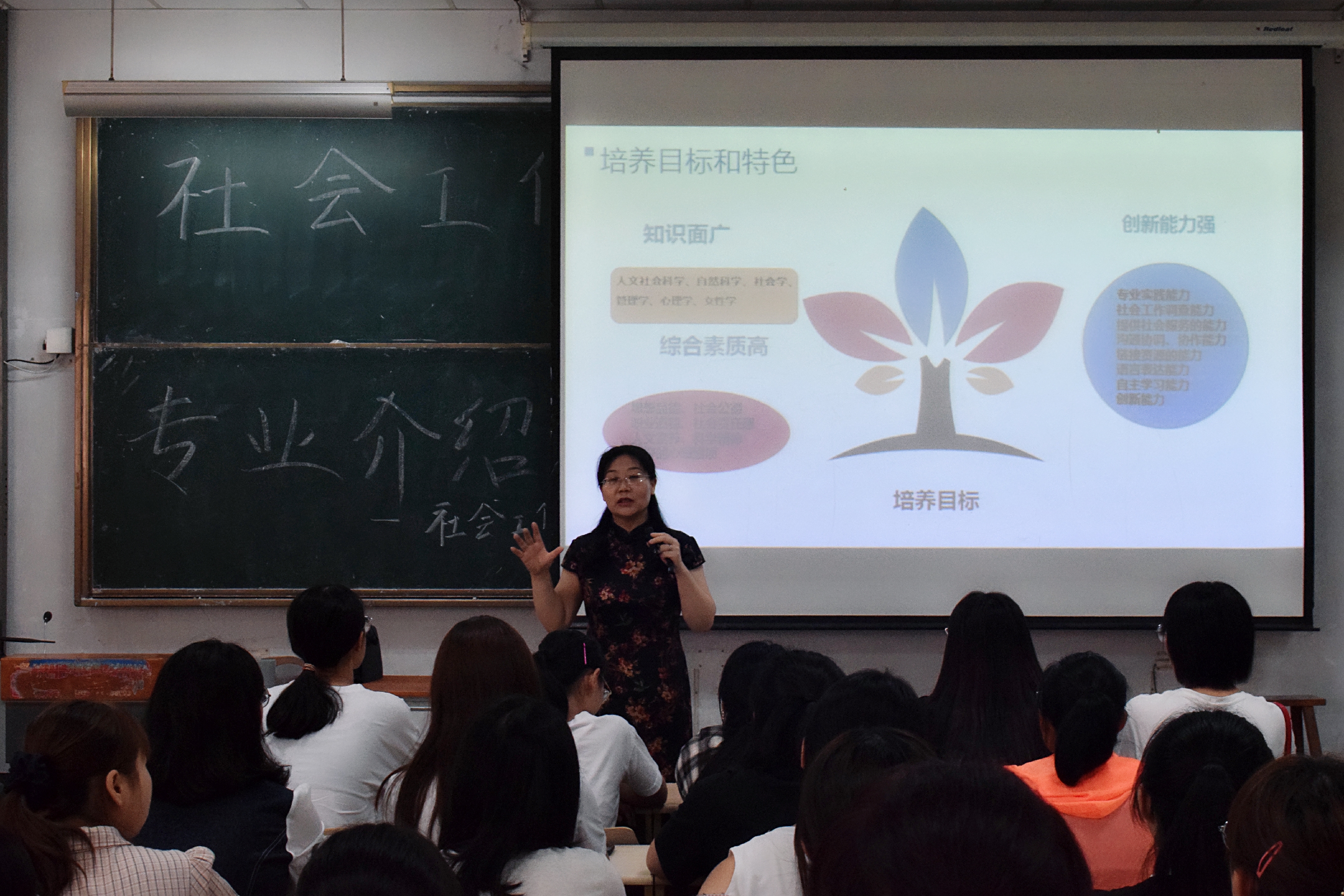 汉语言专业负责人蔡连卫、社会工作专业负责人李晓丽、秘书学专业负责人徐金娟以及公共事业管理专业负责人张水玲分别为本专业新生做了专业介绍。