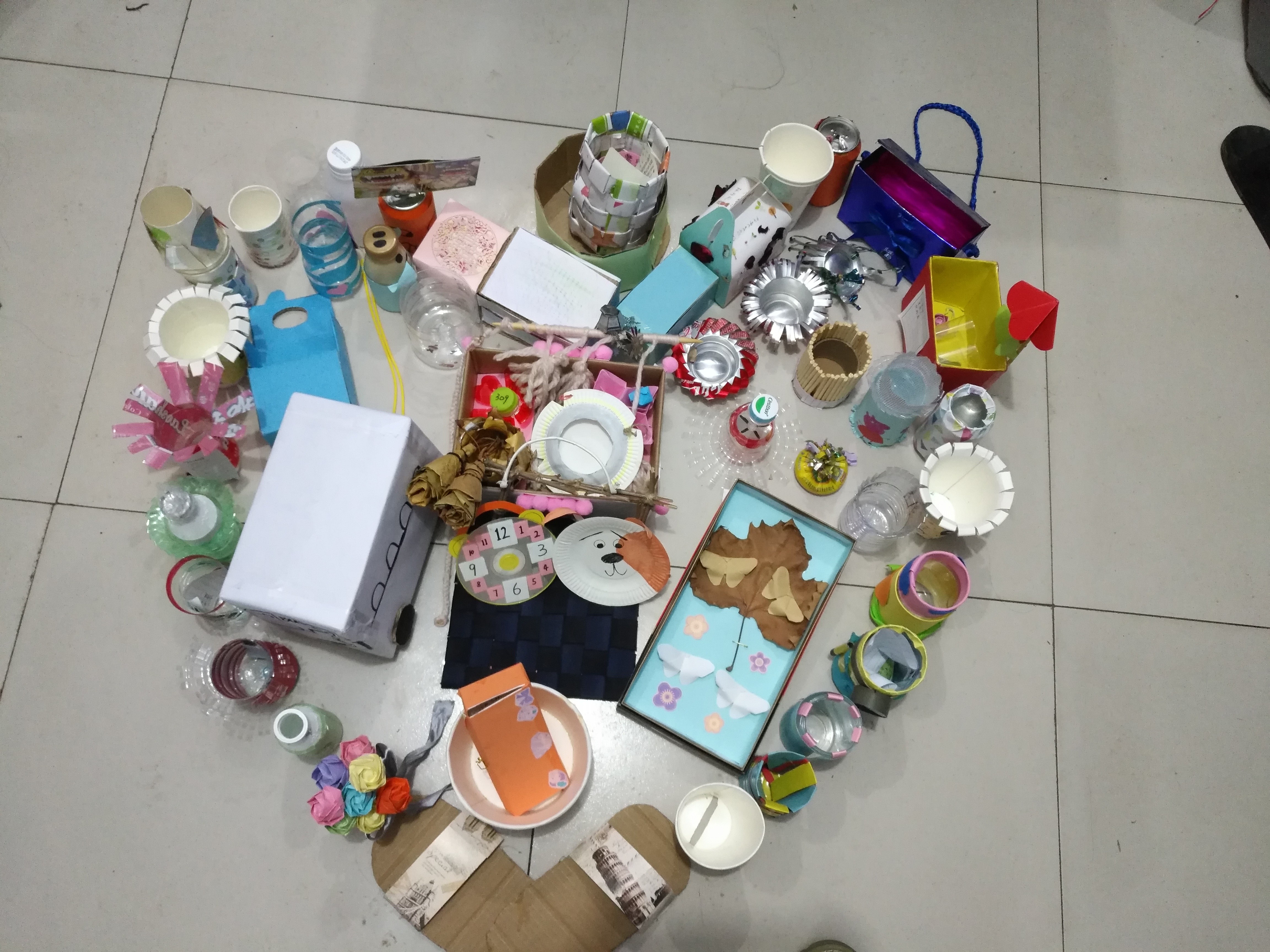 “旧物有限,创意无限”DIY设计大赛尤其出彩,同学们将易拉罐、塑料瓶、旧纸盒等废旧物品充分利用,把它们改造成花瓶、收纳盒、装饰物、小工艺品等等,小巧精致,别出心裁,不仅提高了资源利用率,更强化了使人文学子的环保意识,利于同学们于制作中收获快乐,提高创新意识。