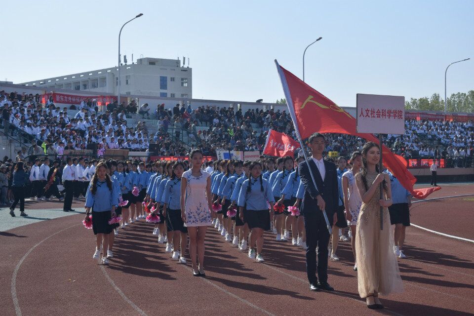 4月27日—28日,青岛农业大学第四十一届田径运动会盛大开幕,人文社会科学学院女子方队手持双色牡丹,身着蓝衣黑裙,一副民国女学生的装扮,展现着人文学子的儒雅风度。方队在主席台前驻足,“青春无畏,逐梦扬威。花开不败,爱在人文”嘹亮的口号在五环运动场上回荡,洋溢着人文学子的青春自信。