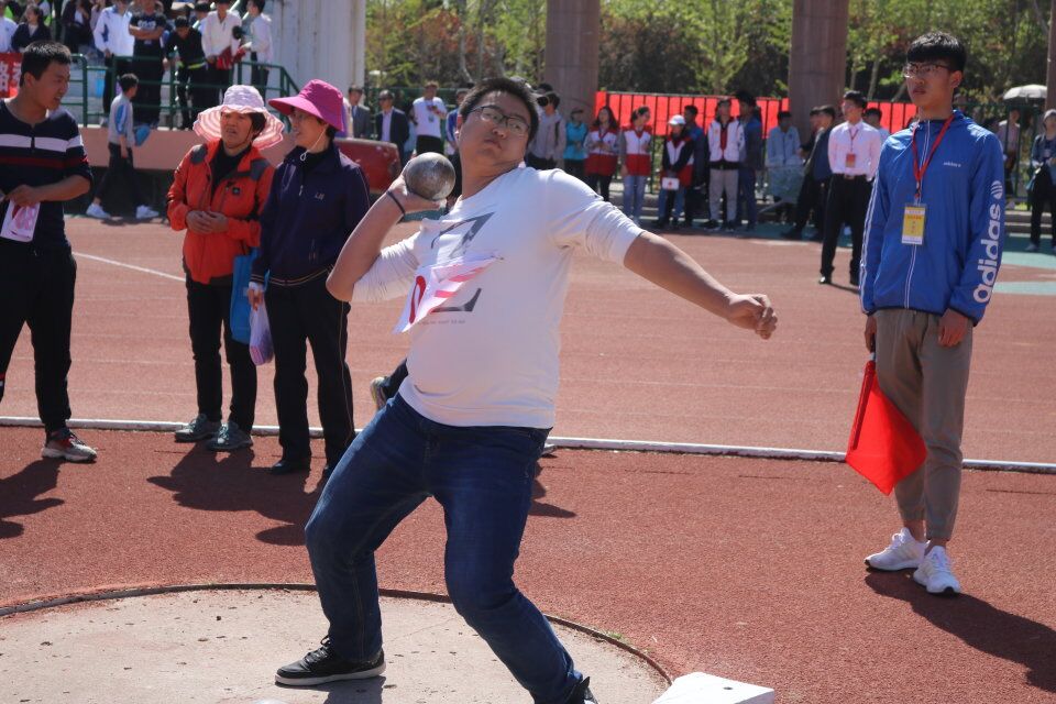 手握铅球,心有成竹,一声嚎去,铅球从空中划过,落在竞赛场上,留下一个精彩的痕迹。王康汇集全身力量,推出理想,推出希望,铅球在空中闪亮,理想在空中发光。