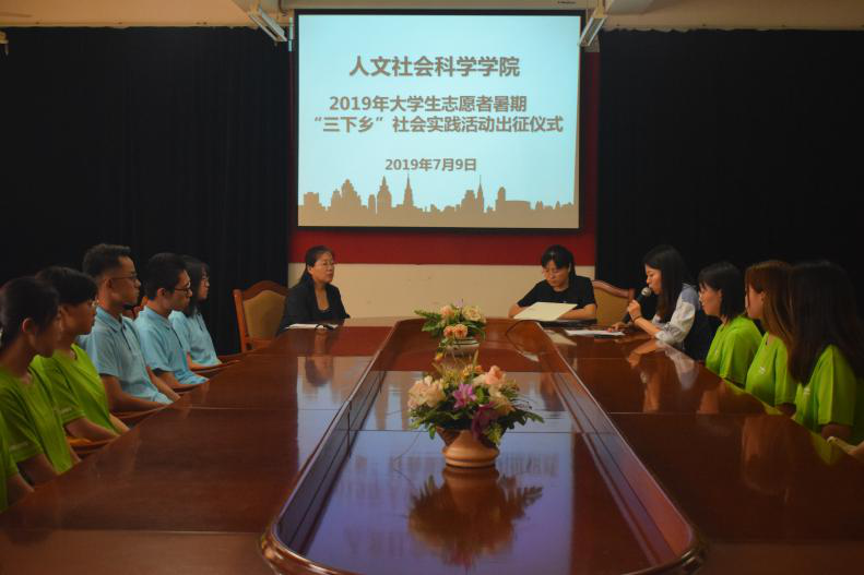 7月9日,青岛农业大学人文社会科学学院在资料室举行2019年大学生志愿者暑期“三下乡”社会实践出征仪式。仪式由辅导员徐璐主持,党总支副书记、副院长张胜芳、院长助理蔡连卫出席会议,暑期社会实践队员代表与会。