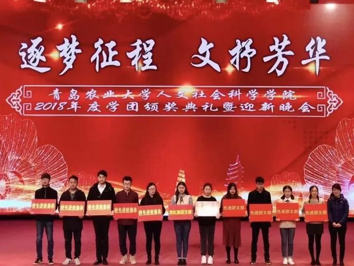 12月9日,青岛农业大学人文社会科学学院在文经楼演播大厅举办“逐梦征程,文抒芳华”2018年学团颁奖典礼。