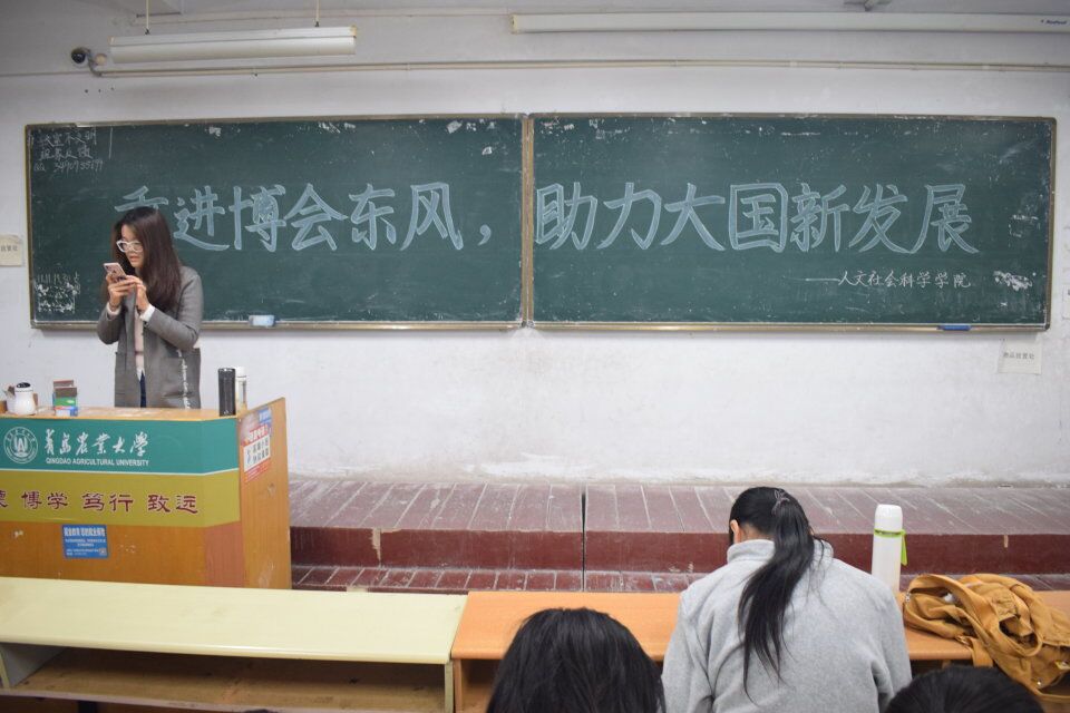 11月11日,青岛农业大学人文社会科学学院开展“乘进博会东风,助力大国新发展”主题政治学习。学院积极响应学校号召,深入贯彻落实习近平新时代中国特色社会主义思想,帮助各班同学了解当前国际政治发展形势,助力发展新方向、新蓝图。