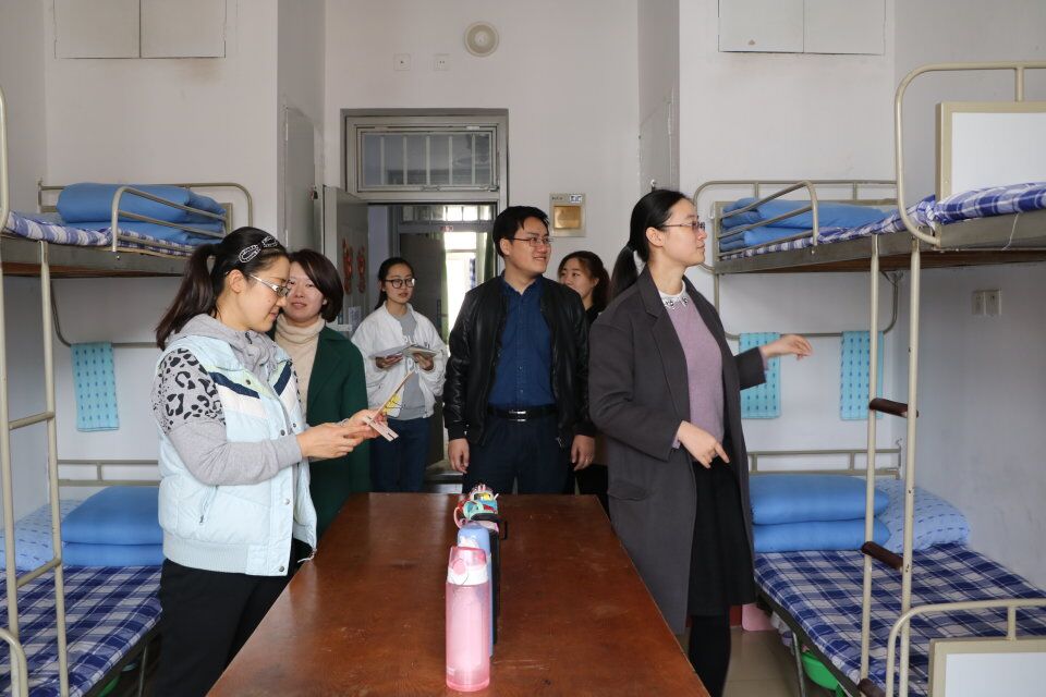 检查中,学院辅导员对学生宿舍可能存在的安全隐患进行了逐一排查,对存在的不安全因素进行了详细记录,并落实到个人。宿舍内务卫生情况整体良好,对桌面东西较多、阳台存在死角等问题进行了反馈。毕业班宿舍是此次检查的重点,在与大四学生交谈中,要求他们要保持良好的卫生习惯,合理规整宿舍物品。
