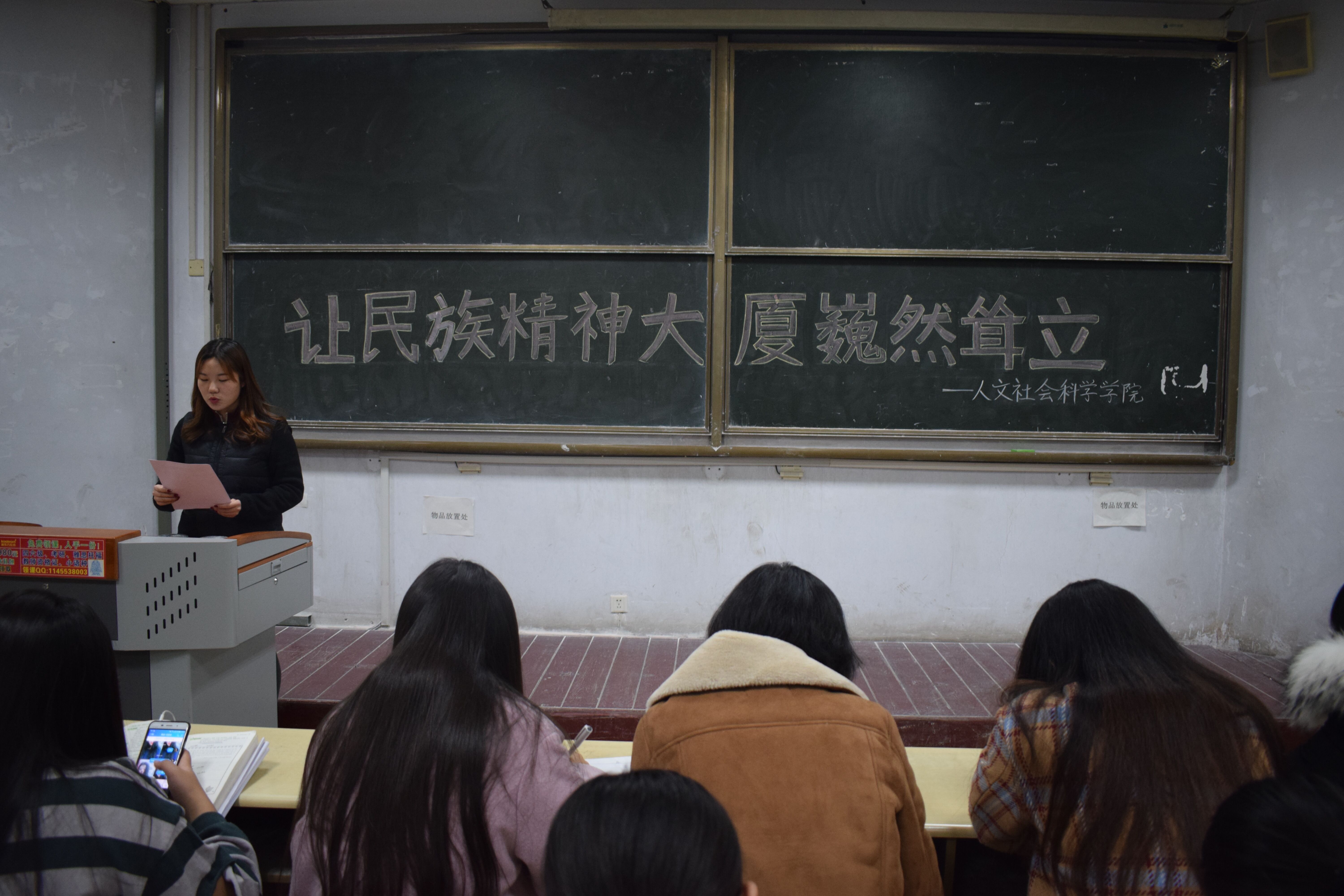 12月3日,人文社会科学学院开展“让民族精神巍然耸立”主题政治学习。围绕刚刚召开的全国精神文明表彰大会,引导学生树立良好的精神面貌。