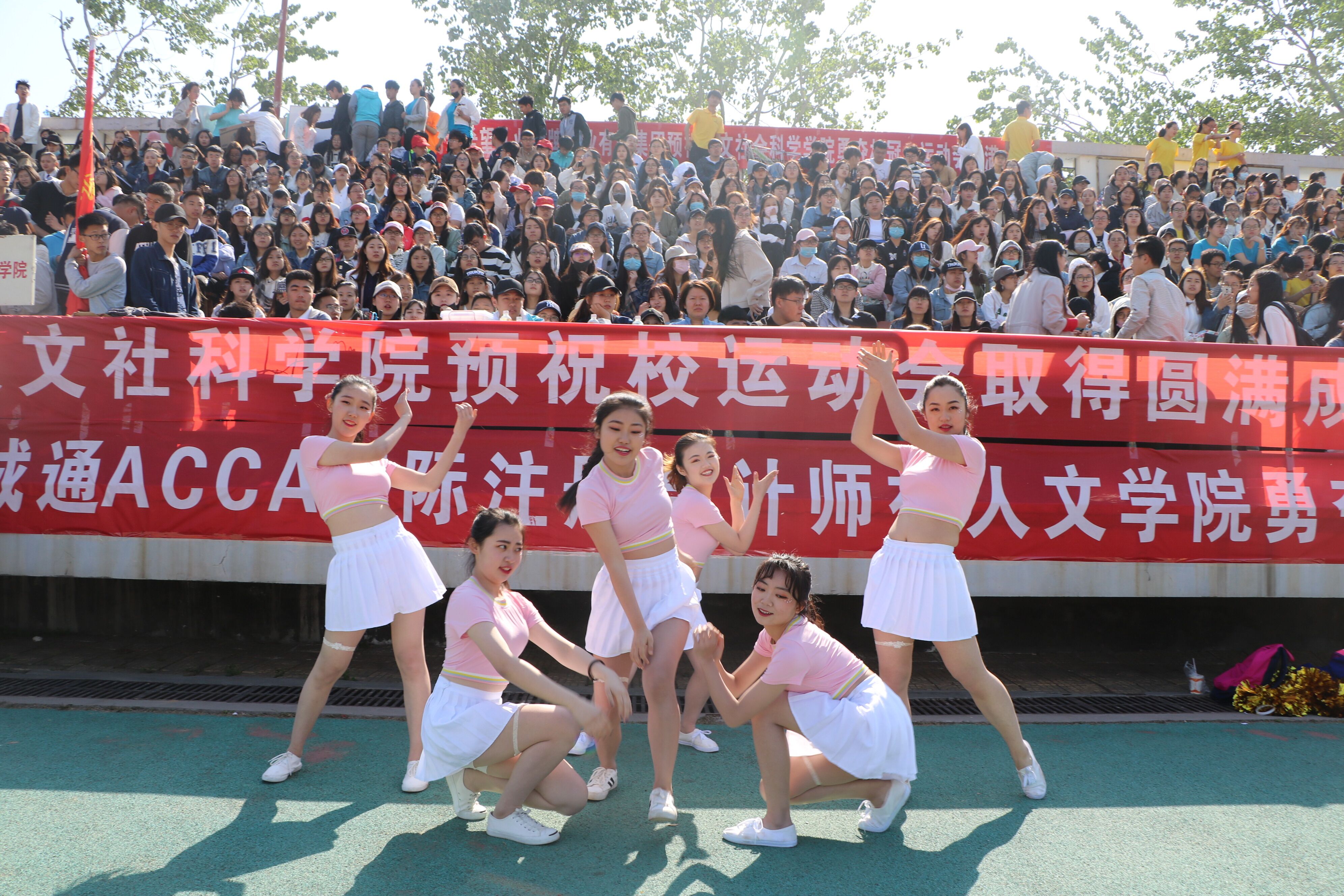 4月27日,青岛农业大学迎来第四十届田径运动会,人文社会科学学院动感的啦啦操表演博得全场欢呼。