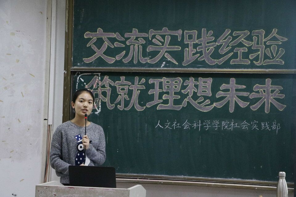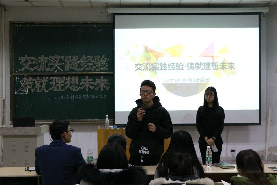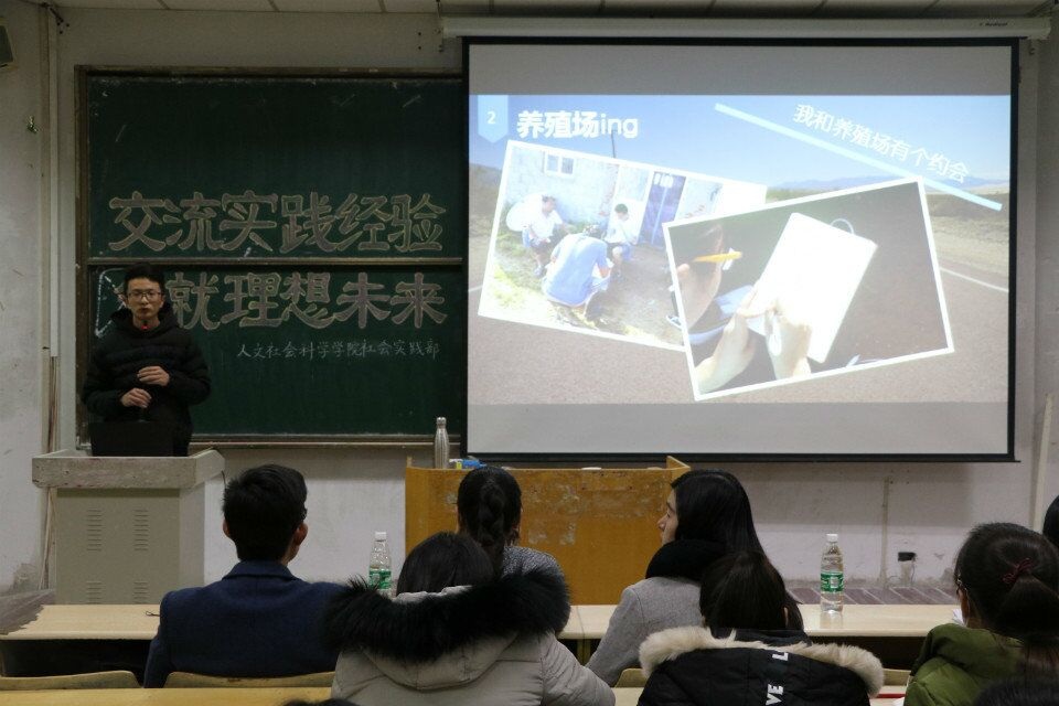 12月11日,人文社会科学学院开展了“交流实践经验,筑就理想未来”社会实践进团课活动。学院邀请到了海洋科学与工程学院的“蓝色海洋”水产调研队、机电工程学院“小小科学家”公益团及“电火花”公益团三队代表,为同学们讲解学院的特色实践活动,分享实践活动中的精彩和收获、体会与经验。